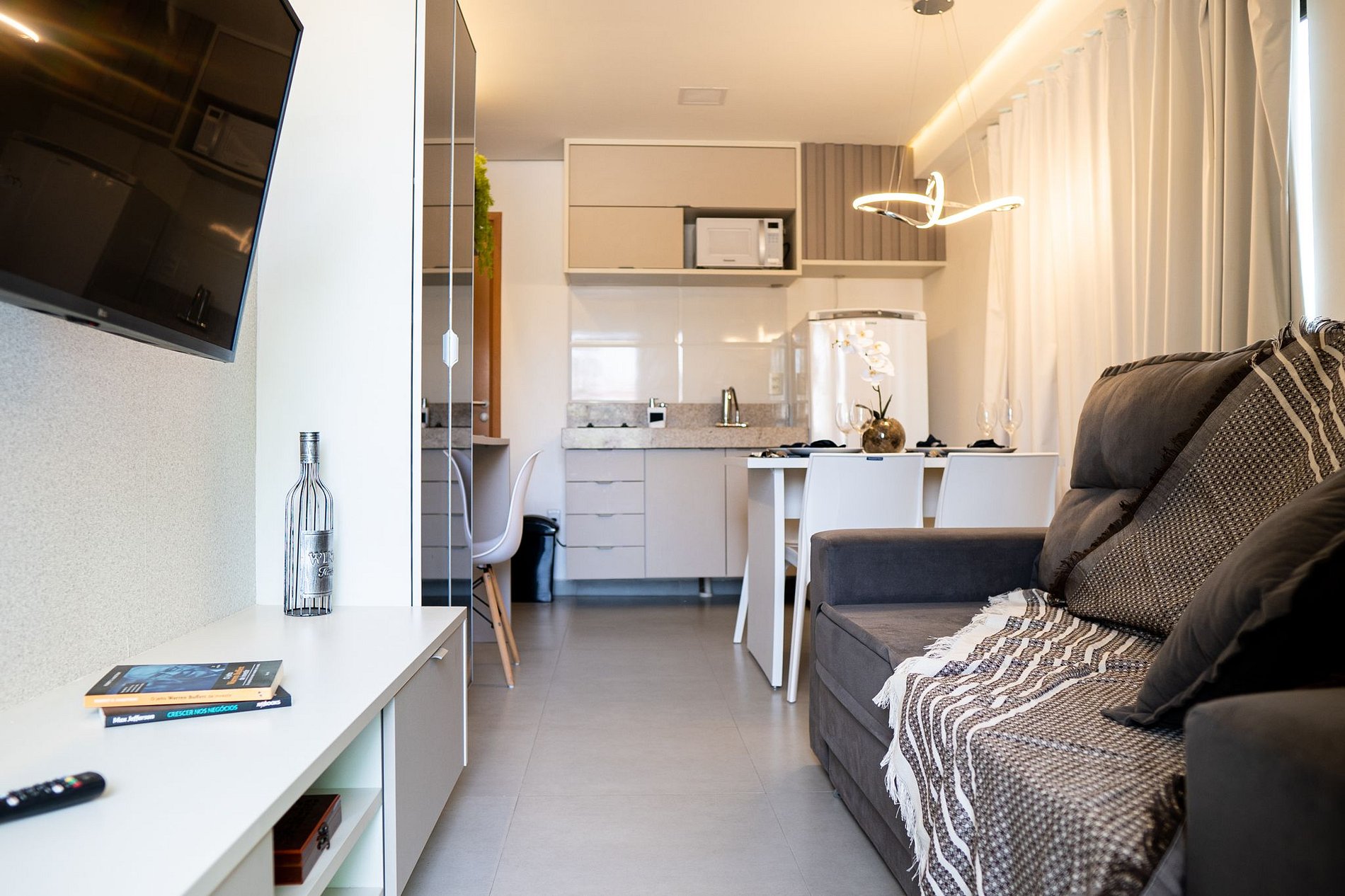 O flat é entregue limpo, e para estadias longas, trocas de enxoval podem ser solicitadas mediante taxa.